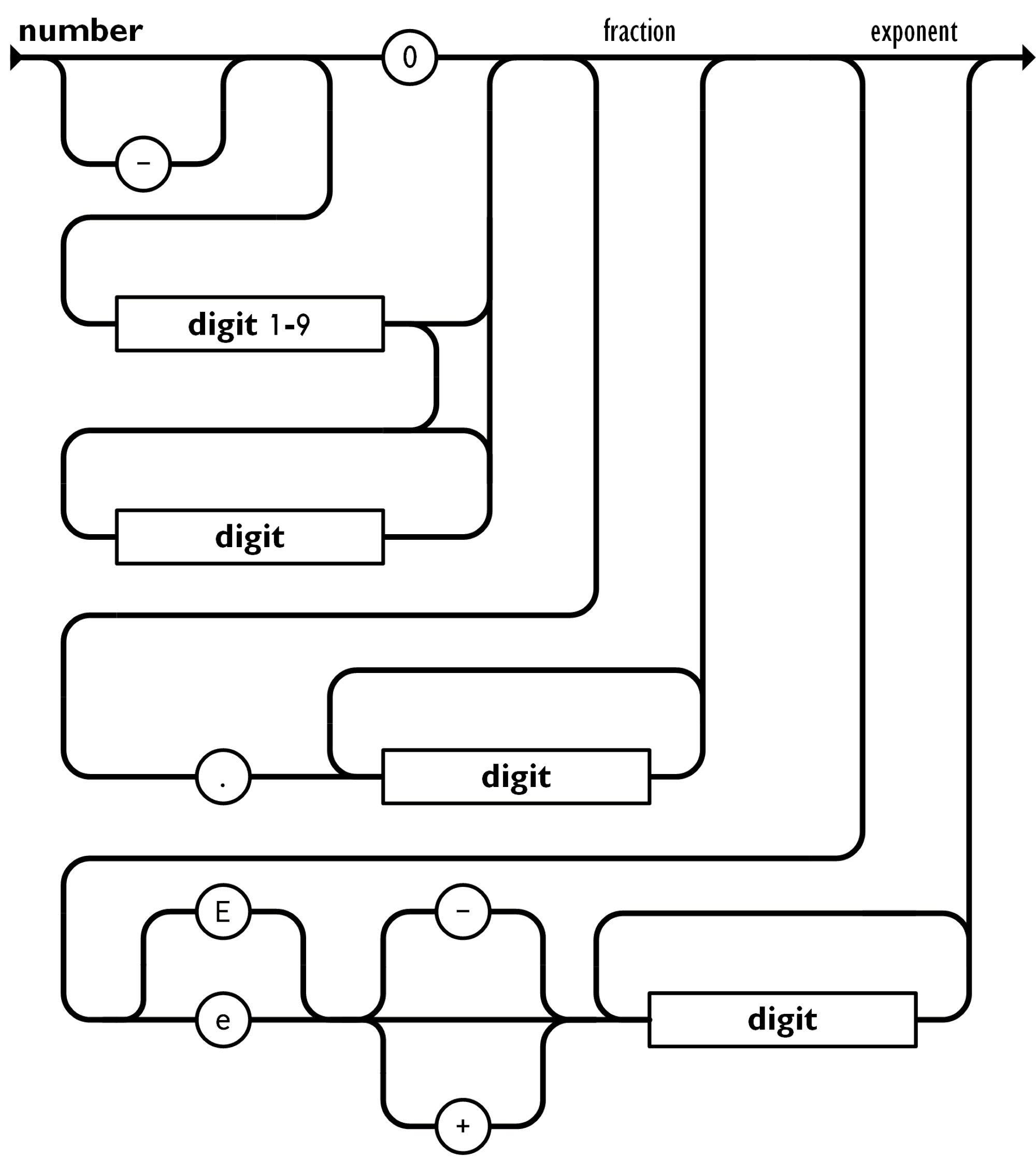 드물게 encode 된 세부 항목을 제외하면, 이렇게 설명된 JSON의 형식은 완벽하게 그 언어를 설명한다.