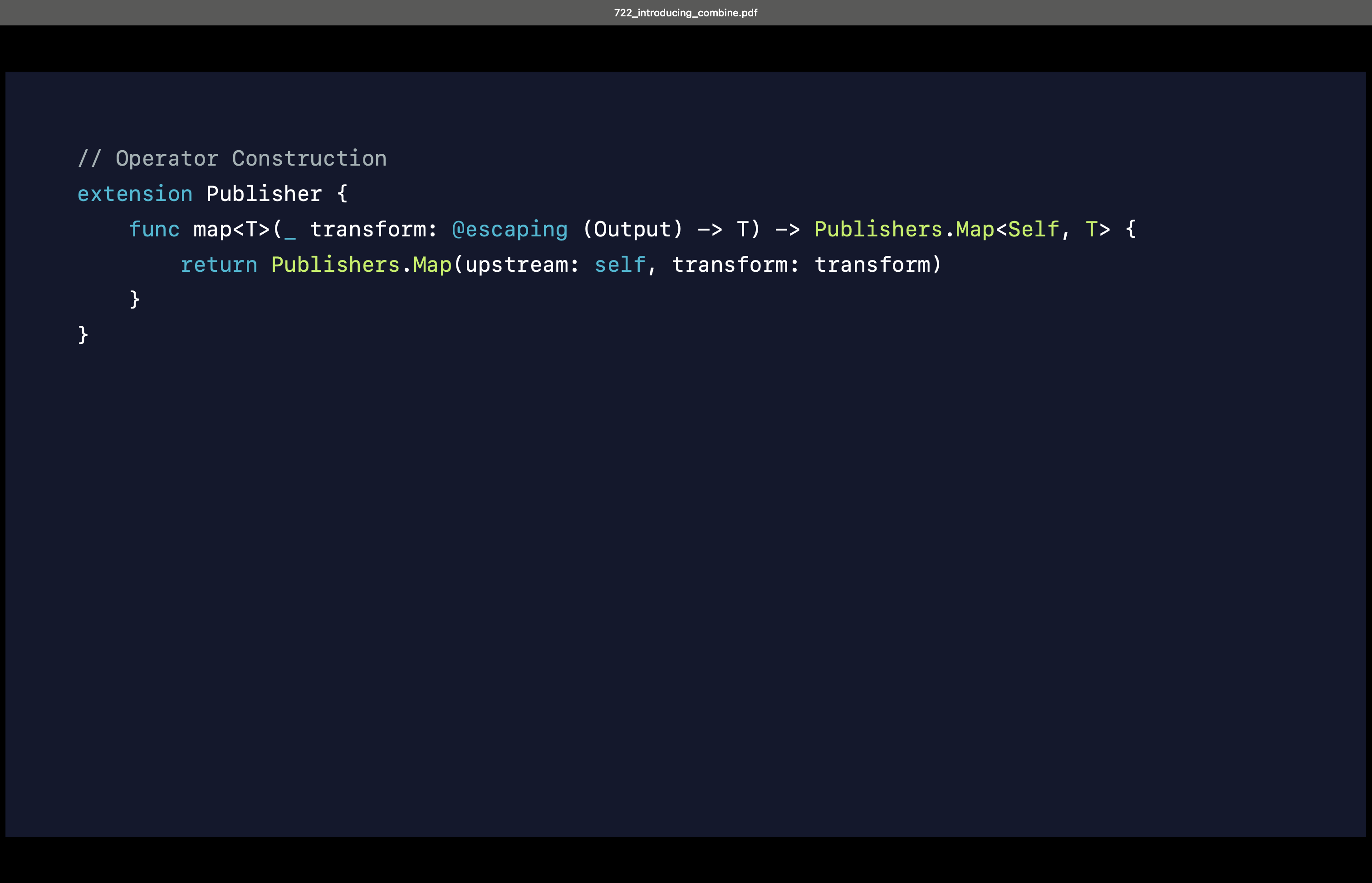 퍼블리셔의 extension으로 self를 사용할 수 있기에 Map을 초기화하기 위한 인수만 필요로 한다.