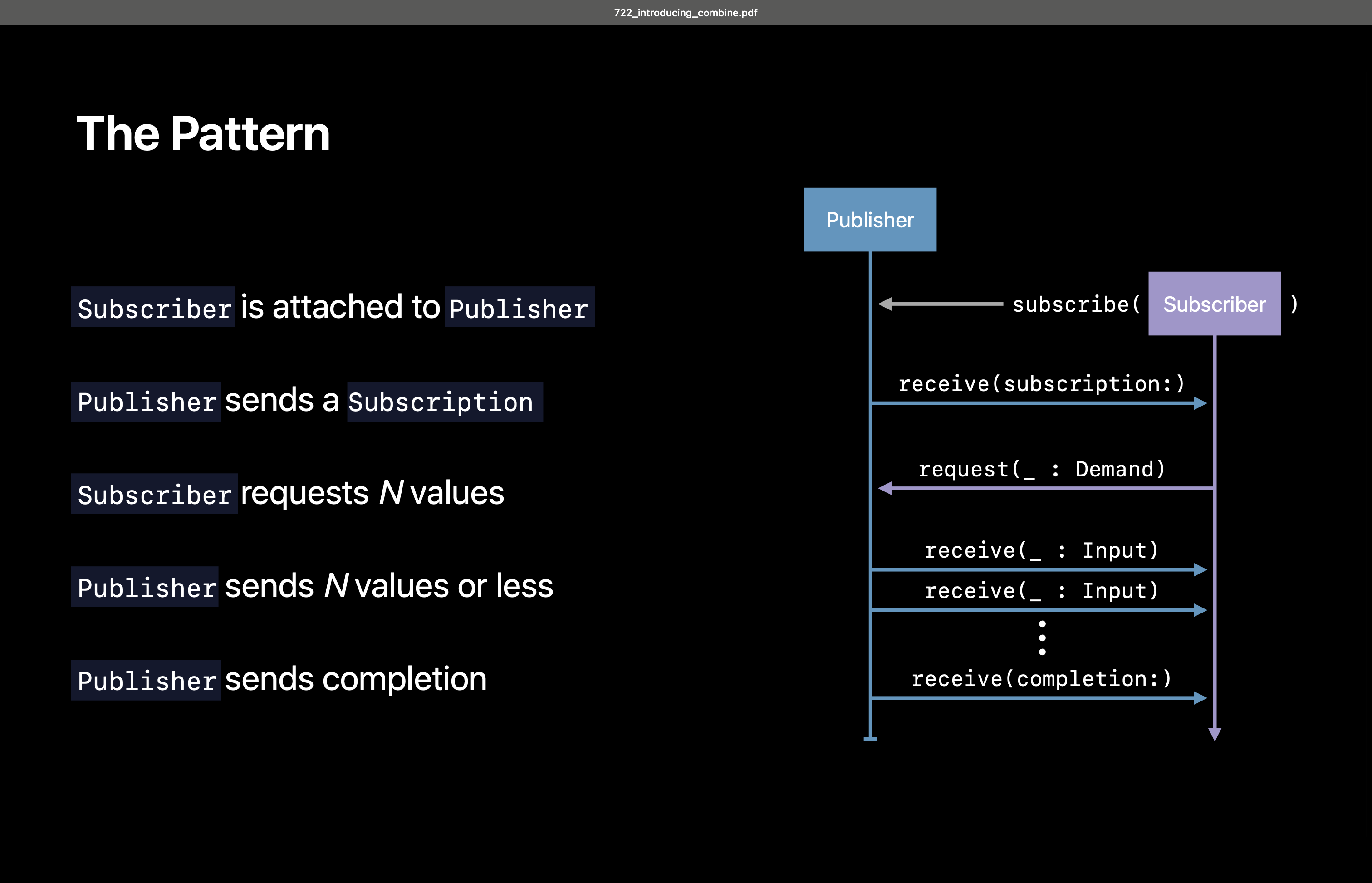 - 그 시점에 퍼블리셔는 서브스크라이버에게 구독을 보낼 것이며, 서브스크라이버는 특정 수 또는 무제한의 값을 퍼블리셔에게 요청하는 데 사용할 것이다.