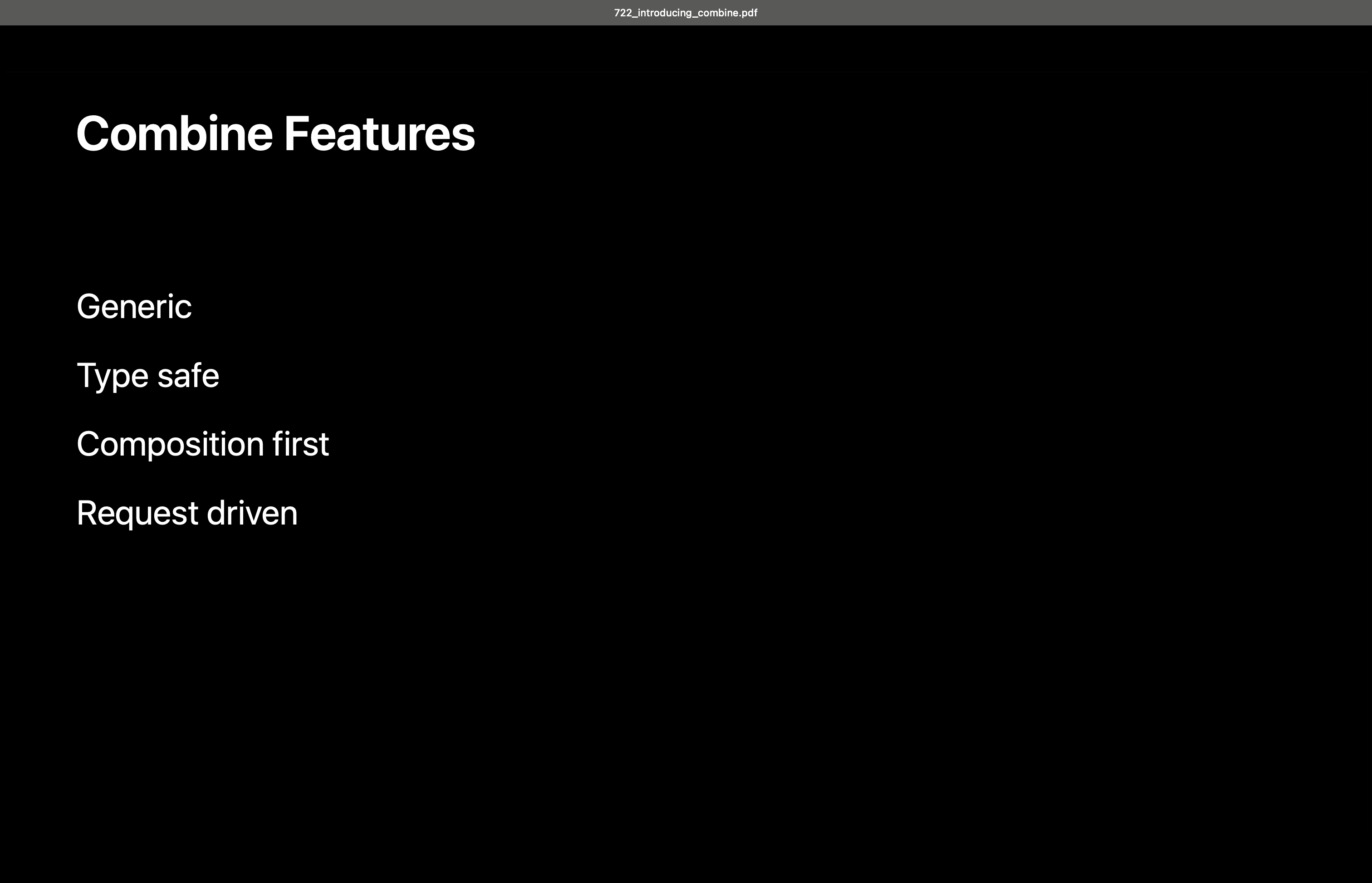 콤바인은 Swift를 위해 작성되었으며, 이 말은 제네릭과 같은 스위프트 기능을 활용할 수 있다는 것을 의미한다.