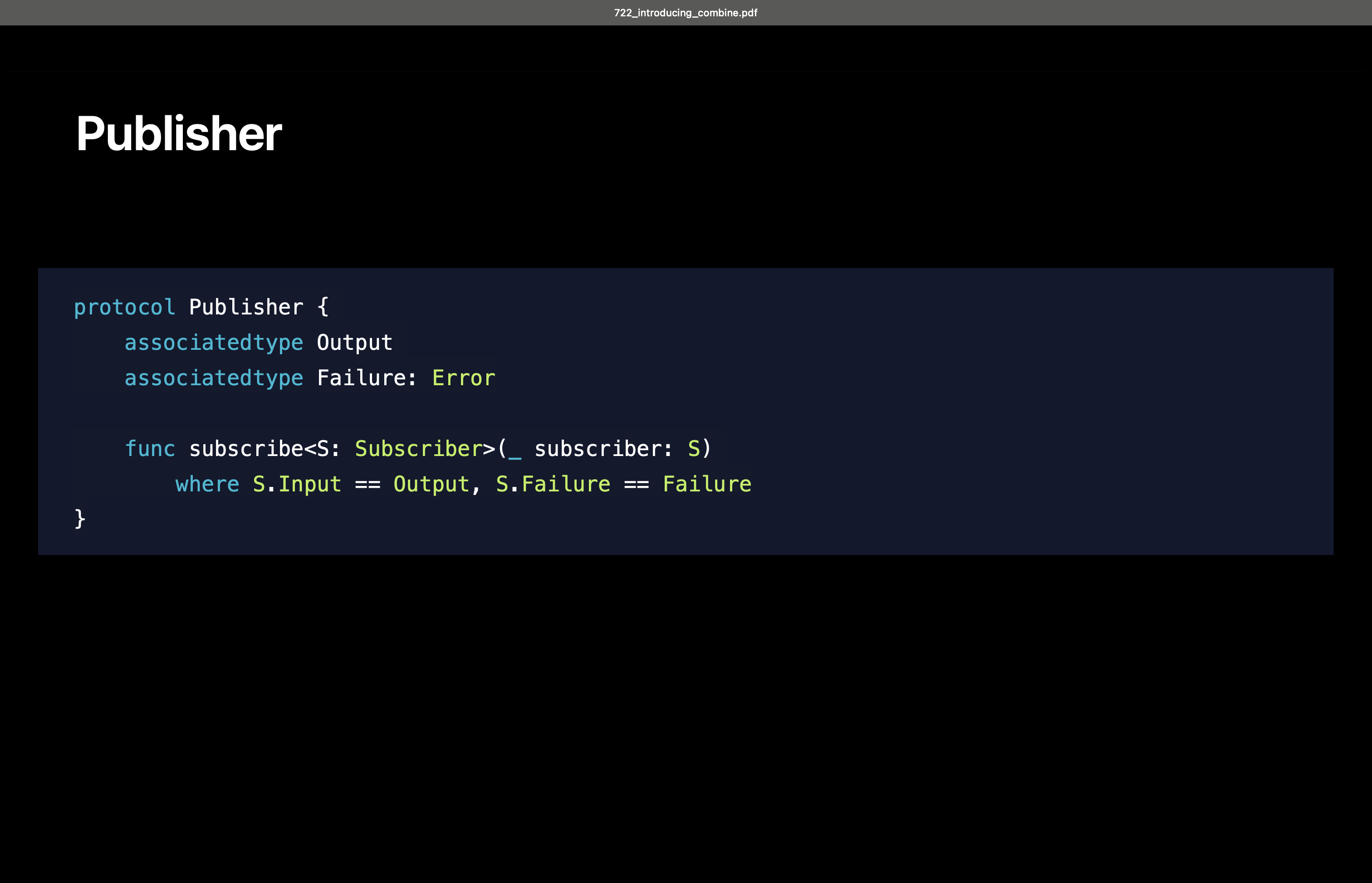 위는 퍼블리셔의 프로토콜이며, 두 가지 associatedtype을 갖는다.