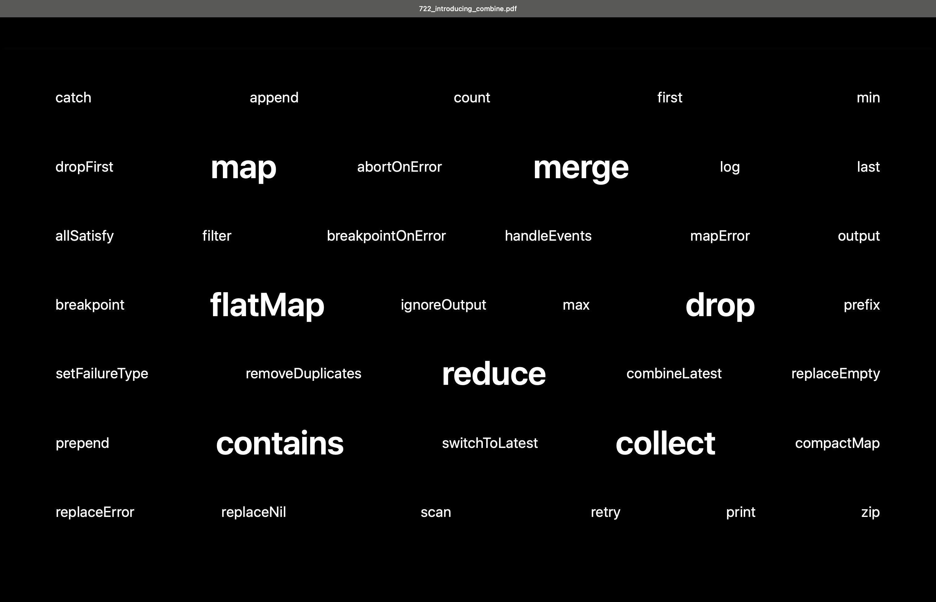 따라서, 모든 오퍼레이터를 탐색할 수 있도록 기존 Swift Collection API에서 이름에 대한 영감을 얻었으며, 방법은 다음과 같다.