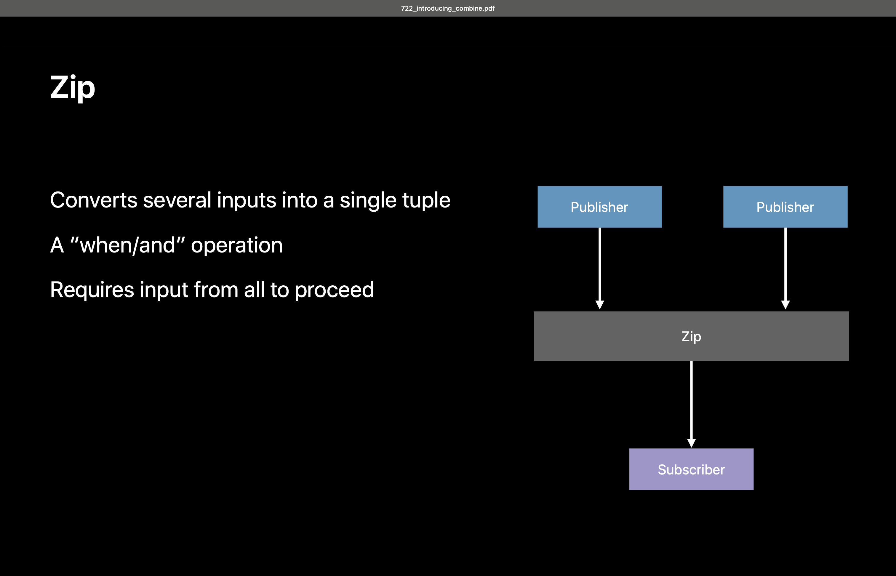 - 여러 비동기 연산의 결과에 가중치를 부여하면 네트워크 연산을 포함해 Zip을 사용